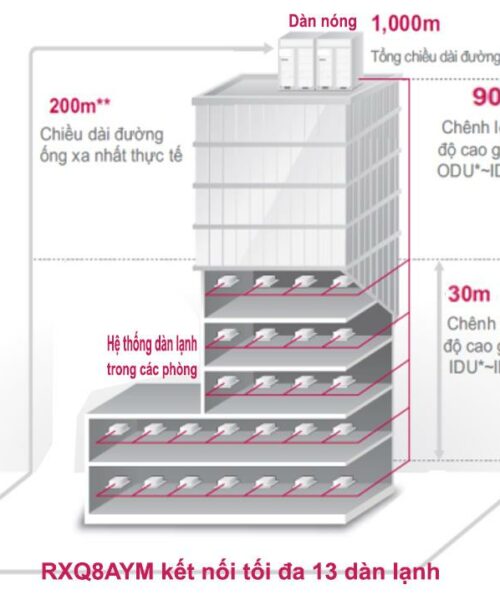 – Tỉ lệ kết nối 50 – 200% = Tổng công suất danh nghĩa dàn lạnh / công suất danh nghĩa dàn nóng.